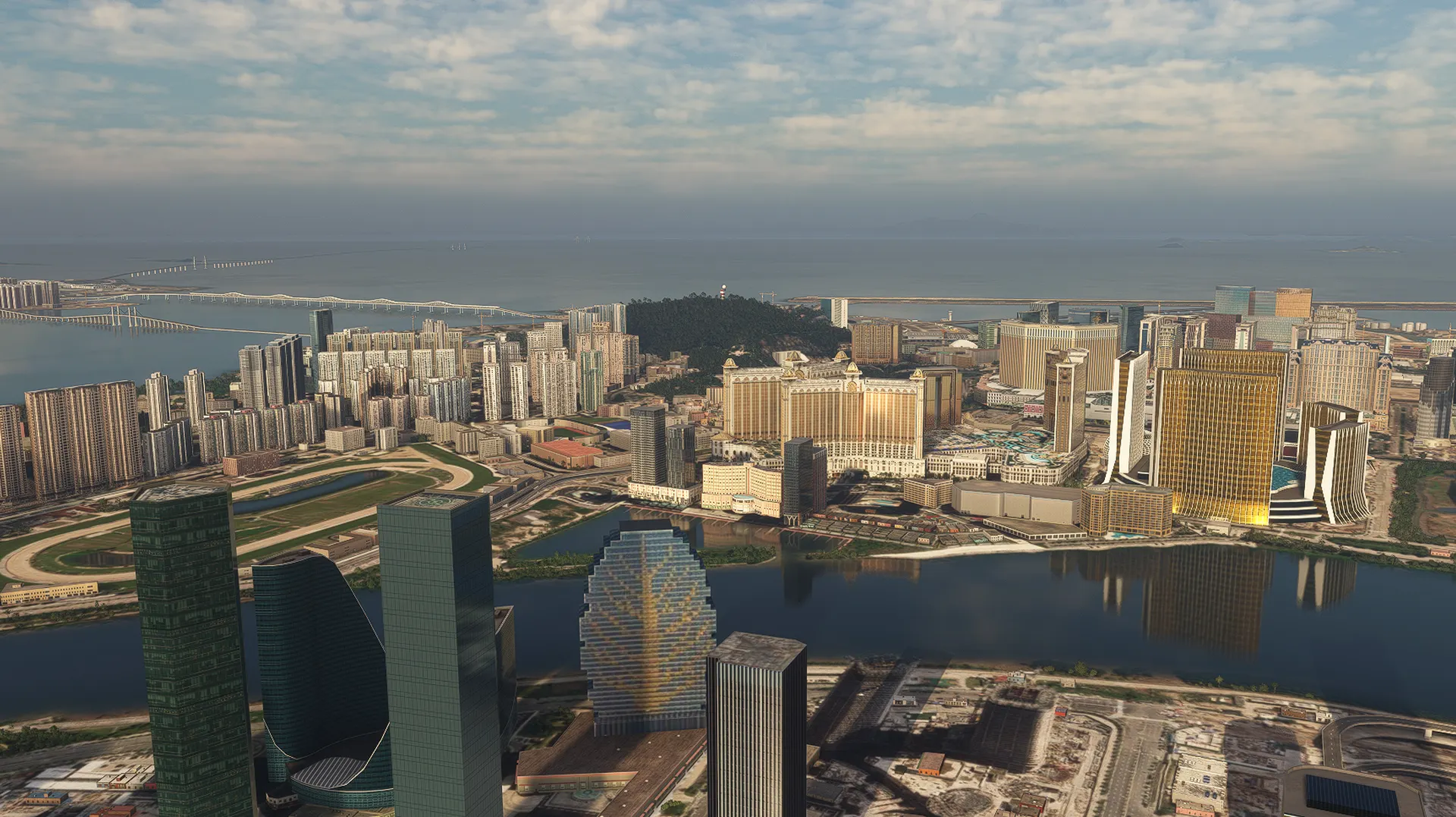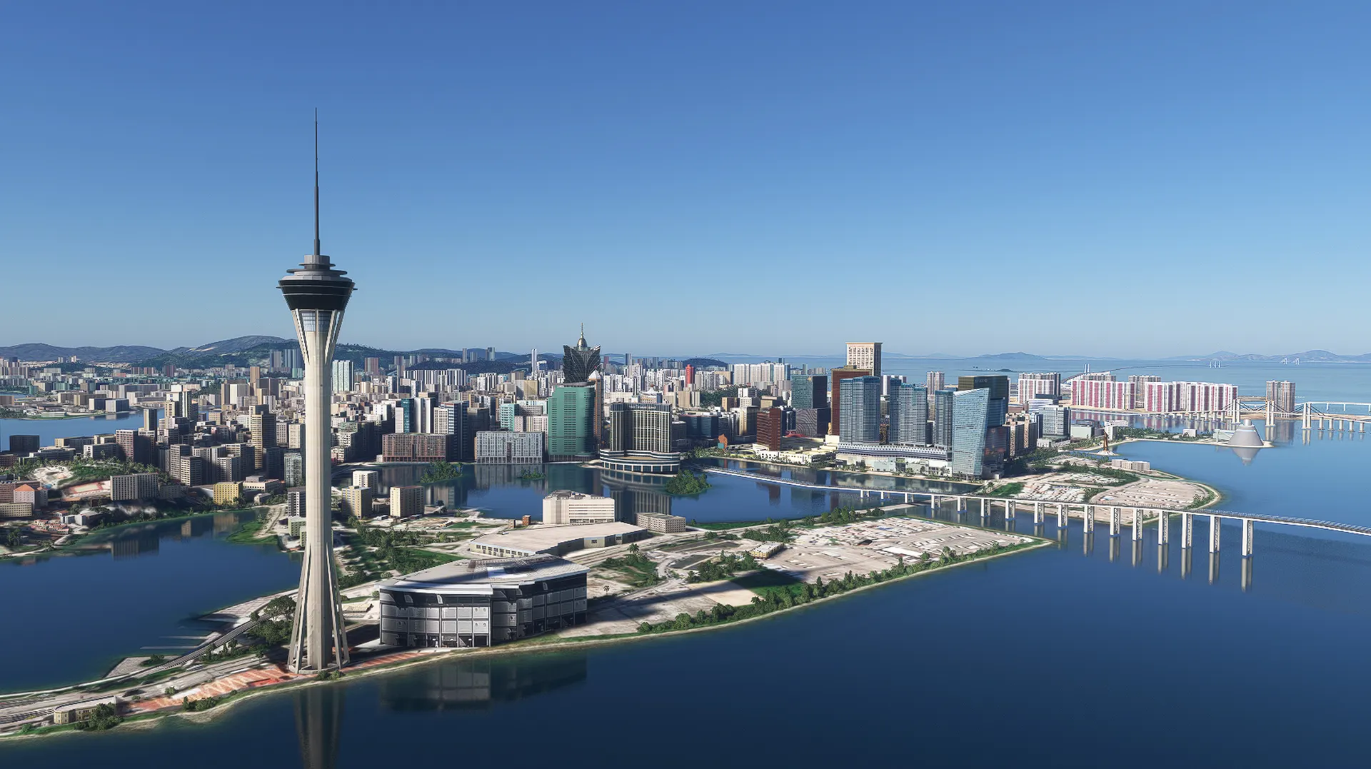 Macau, also spelled Macao, is the Macao Special Administrative Region of the People's Republic of China. It is a small city located 30km to the west of Hong Kong. Macau was a colony of Portugal until 1999. Macau today became an important gambling place, with gross casino income bigger than Las Vegas in the past years. This scenery covers the whole Macau city scenery with its airport in details, as well as some buildings of Zhuhai city.