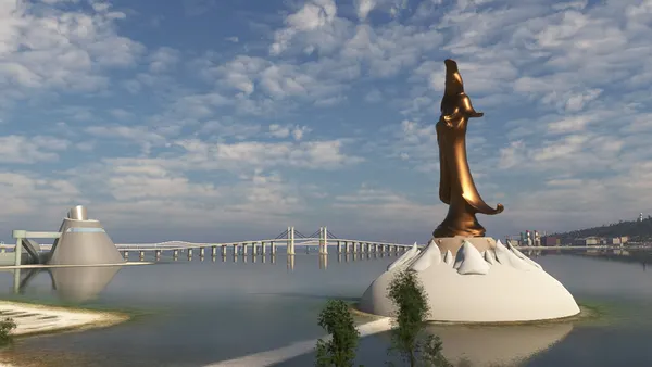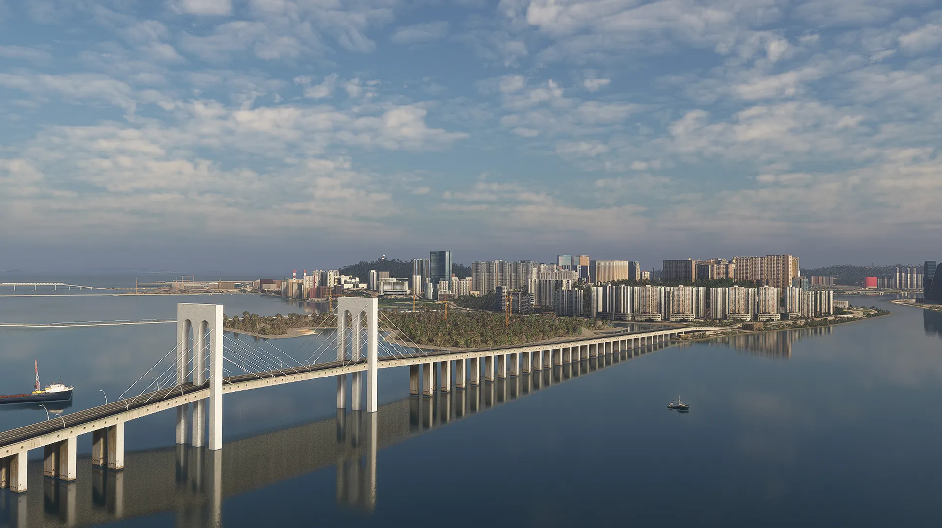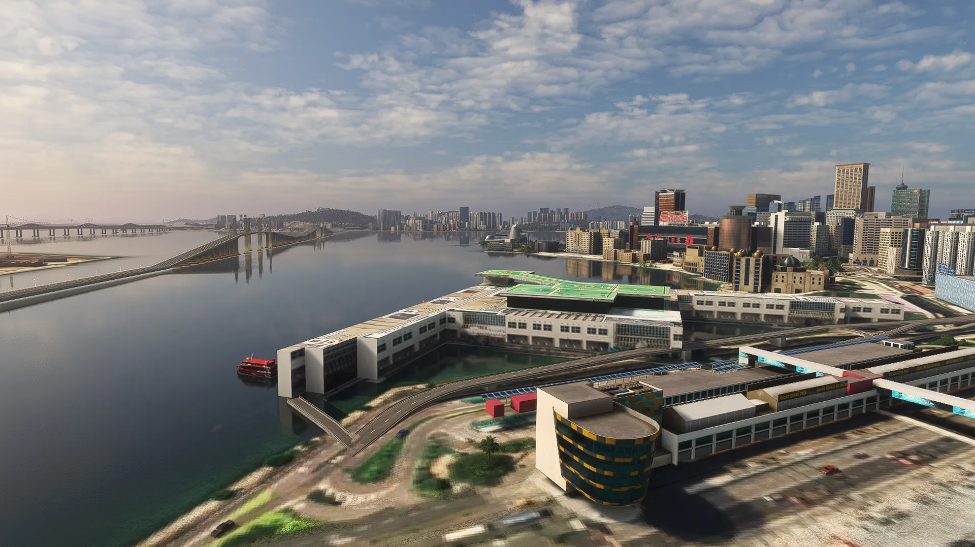- Hong Kong - Zhuhai - Macau bridge with custom buildings