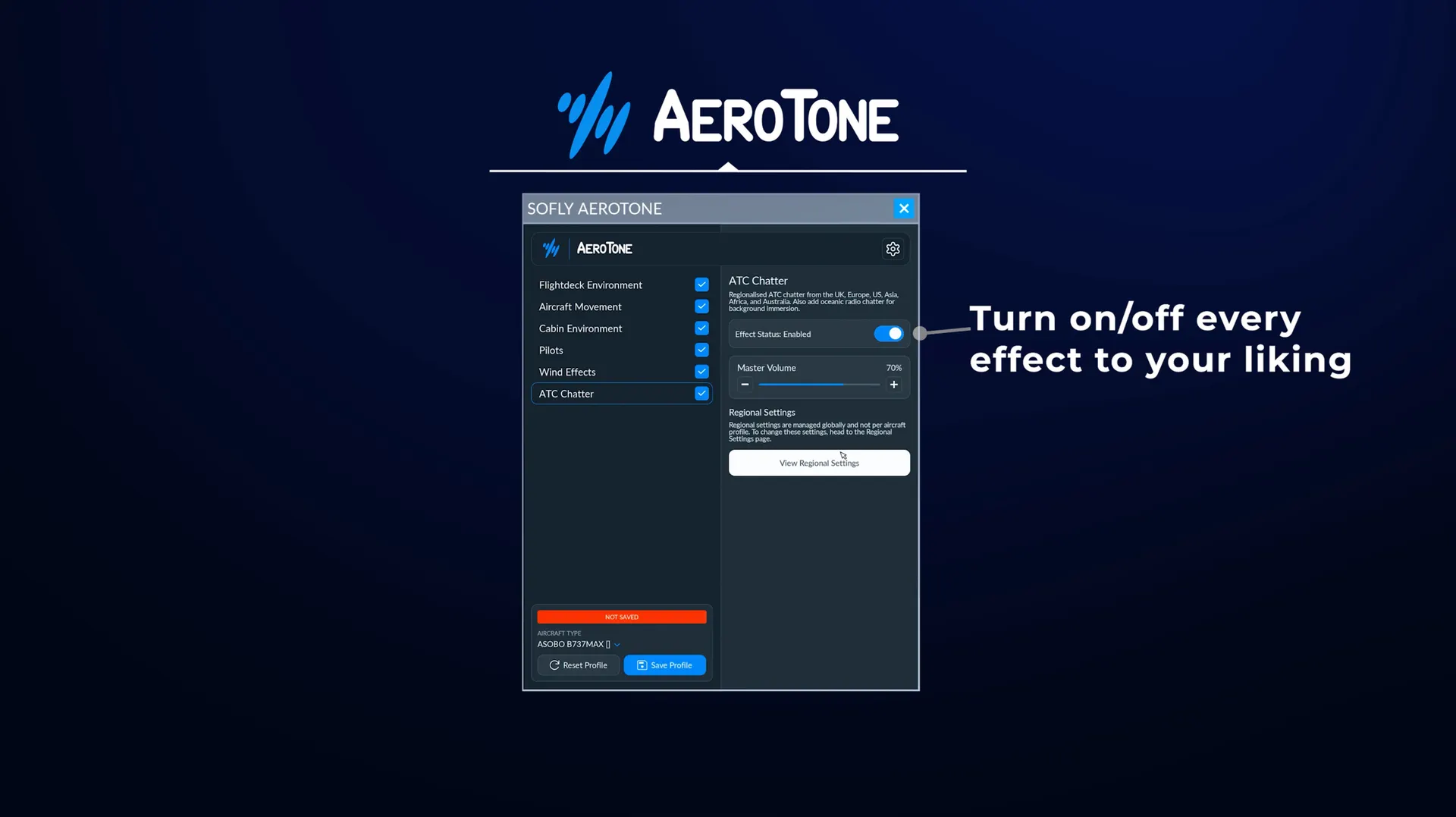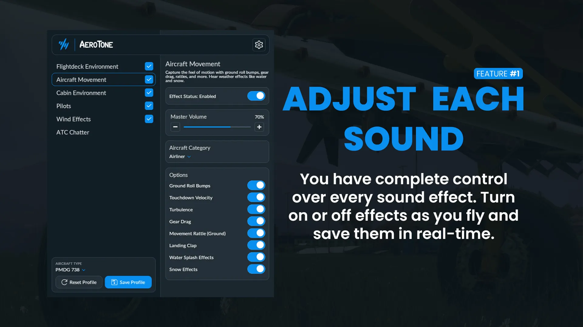 AeroTone adds depth and detail to engines, wind layers, avionics, airframe movement, environmental effects, and more, creating a multi-layered acoustic experience throughout every phase of flight.